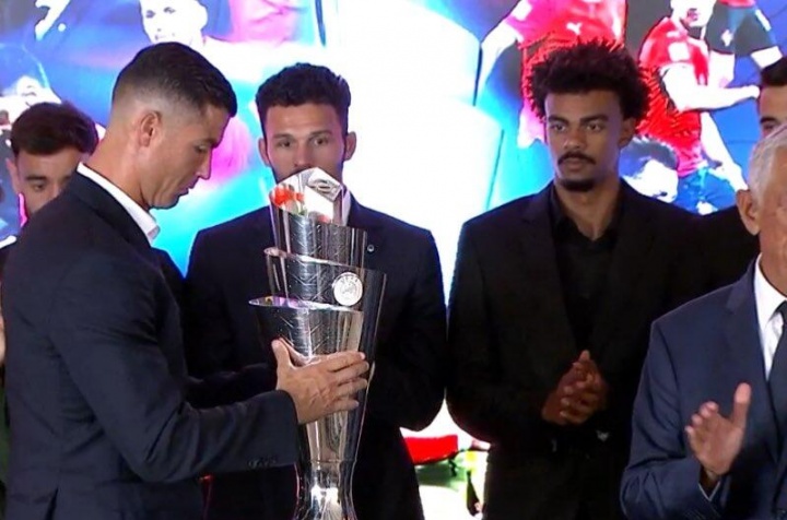 C罗与国家队成员一同出席并默哀致敬。期间,C罗拥抱了若塔的父亲以表达慰问。他还代表葡萄牙队展示了欧国联冠军奖杯,将这一集体荣誉献给若塔,以此铭记他为国家作出的卓越贡献。